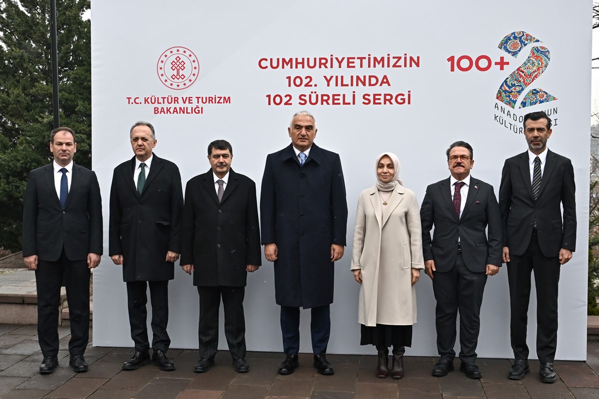 Kültür ve Turizm Bakanı Ersoy, "100+2 Süreli Müze Sergileri Projesi"nin açılışında konuştu.Kültür ve Turizm Bakanı Mehmet Nuri Ersoy, Cumhuriyet'in 102'nci yılından ilhamla adlandırdıkları "100+2 Süreli Müze Sergileri Projesi" kapsamında, geleneksel değerleri çağdaş bir yaklaşımla birleştirerek Anadolu'nun benzersiz kültürel zenginliğini ziyaretçilerle buluşturacaklarını bildirdi. Ersoy, Ankara Resim ve Heykel Müzesi Türk Ocağı Salonu'nda düzenlenen "100+2 Süreli Müze Sergileri Projesi"nin açılış programında yaptığı konuşmada, bir asrı geride bırakan Cumhuriyet'i her alanda özgün ve öncü, bağımsız ve lider kılmak adına adımlar atıldığını, bunu yaparken Cumhuriyet'in varisi aziz milletin ve gelecek nesillerin kültürel kimliğini yaşatarak, kökleri geleceğe eksiksiz taşımak için gayret gösterdiklerini belirtti. Türkiye Yüzyılı'nı inşa ederken çocukların ve gençlerin özünü, kimliğini, geçmişini bütün yön ve değerleriyle bilmelerini, bu muazzam mirastan gelen öz güvenle, düşünüş ve duruşla yollarında ilerlemelerini arzu ettiklerini belirten Ersoy, bugün tanıtımını yaptıkları 100+2 Süreli Müze Sergileri Projesi'nin, Türk kültürü ve Anadolu topraklarının medeniyet mirasını gözler önüne seren konseptiyle bu amaca önemli katkılar sunacağına inandığını kaydetti. Bakan Ersoy, "Cumhuriyet'imizin 102'nci yılından ilhamla ad verdiğimiz bu kıymetli proje kapsamında, geleneksel değerlerimizi çağdaş bir yaklaşımla birleştirerek Anadolu'nun benzersiz kültürel zenginliğini ziyaretçilerimizle buluşturacağız. 102 farklı sergi ve temayla ayrıca ilk kez gün yüzüne çıkarılarak teşhire konulan eserler üzerinden özel bir deneyim sunacak, tarihimizin saklı hikayelerini anlatacağız. Kültürel mirasımızı dünden bugüne taşıyacak, yarınlara ulaşması adına yeni bir yol açmış olacağız." diye konuştu.